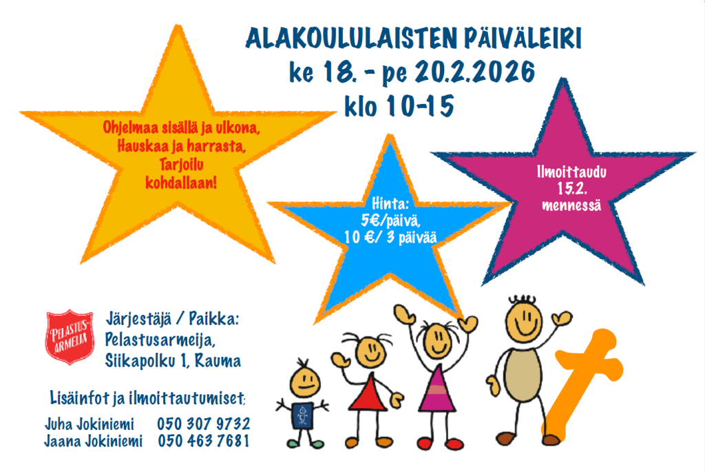 KE-PE 18.-20.2.2026 ALAKOULULAISTEN PÄIVÄLEIRI Hiihtolomaviikolla, kysy lisää Jaanalta tai Juhalta