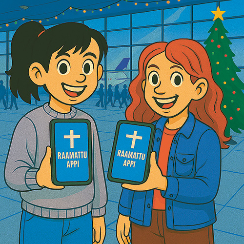 Olimme lentokentällä matkalla Yhdysvaltoihin vierailemaan ystäväni entisen isäntäperheen luokse, kun hän huomasi, että minulla oli Raamattu-sovellus puhelimessani. Hän oli yllättynyt, ja ensimmäinen ajatukseni oli, aikooko hän tuomita minut. Sitten hän näytti, että hänellä on sama sovellus. Siinä hetkessä tuntui kuin Jumala olisi lähettänyt “enkelin” ystäväkseni. Sydämeni ilahtui kovasti! Minulla ei pahemmin ollut kristittyjä kavereita, ja huolimatta siitä, että ystäväni oli lapseni kummi, vasta tässä hetkessä havahduin, miten molemmat janoamme Jumalan Sanaa ja läheisyyttä. Tapahtumasta on kulunut yli vuosi, ja olemme siitä lähtien kävelleet yhdessä hengellistä matkaa. Olen erittäin kiitollinen Saijalle kaikesta hänen vilpittömästä tuestaan ja yhteisistä muistoista.