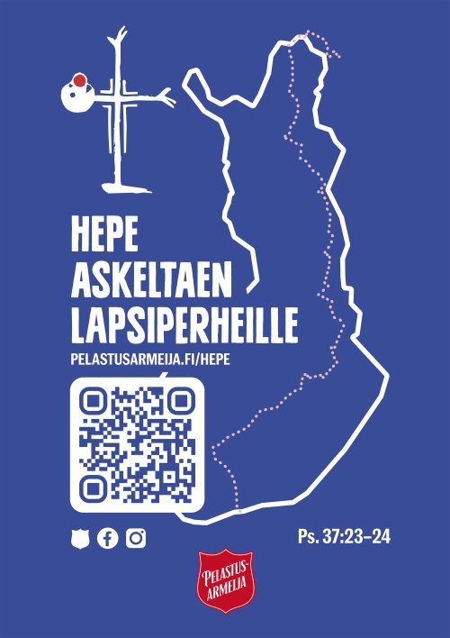 Seuraa Hepen matkaa Suomen halki reittiliveseurannan ja sosiaalisen median päivitysten avulla: pelastusarmeija.fi/hepe