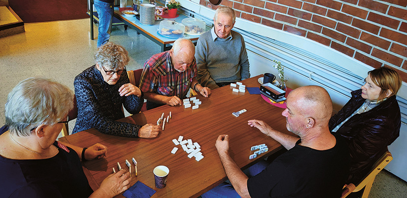 Osaston salissa käy tohina ja kuuluu iloinen puheensorina. Viitisenkymmentä henkilöä on saapunut yhteisöaamiaiselle: muun muassa osaston jäseniä ja ystäviä, avustusasiakkaita ja paikkaan ensi kertaa tutustuvia.