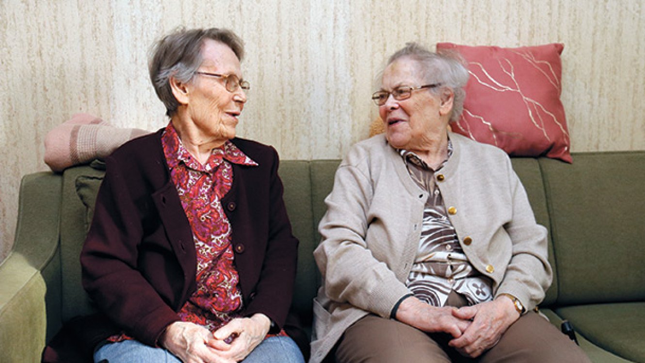 – Ennen koronaa otimme ahkerasti osaa jumalanpalveluksiin ja tiistaikerhoon. Nythän sitä taas saisi mennä, mutta jalkani on sen verran huonossa kunnossa, että olen arastellut lähteä, Terttu kertoo. – Nyt tekisi kyllä mieli. Ei se matka niin pitkä ole, tule sinäkin Terttu, Gunnel rohkaisee. – Ei se matka, vaan se istuminen, mikä tekee kipeää. Mene sinä vain, sillä välin minä voin heittää vaikka pitkäkseni, Terttu vastaa ja katsoo lämpimästi ystäväänsä silmiin.